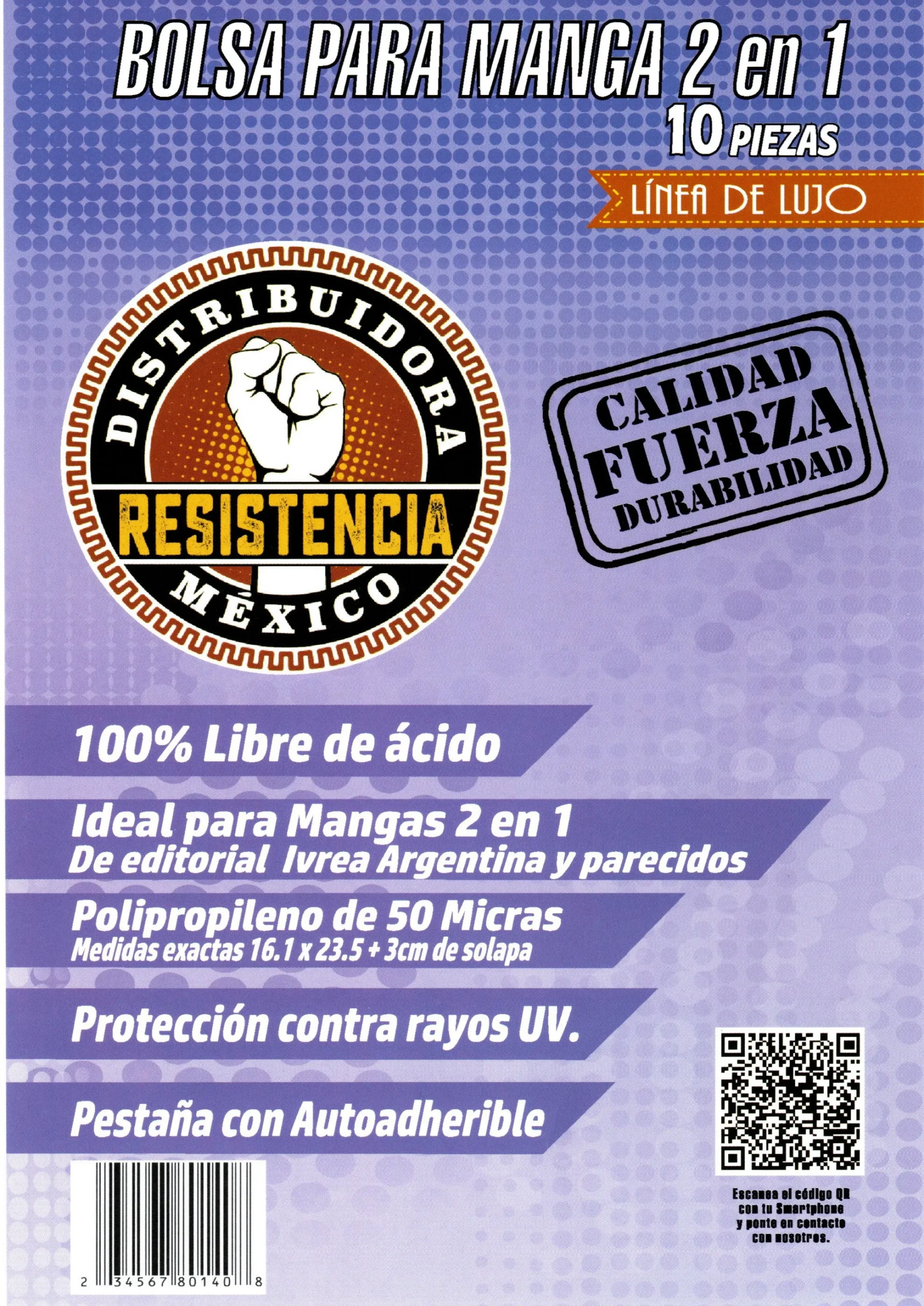 Protege tus mangas de distintos tamaños con la versátil bolsa 2 en 1, diseñada para adaptarse a formatos B6 y Full Color sin perder ajuste ni protección. Fabricadas en polipropileno de 50 micras, 100 % libre de ácido, ofrecen resistencia, transparencia y protección profesional contra el desgaste y los rayos UV.